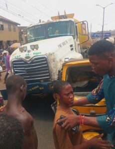 Eyewitnesses at the scene described a moment of panic as the heavy-duty vehicle crushed the tricycles, leaving some occupants trapped beneath the wreckage.